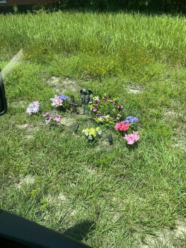 The wonderful people from Walmart 5326 put together a roadside memorial near the crash site. It's a place